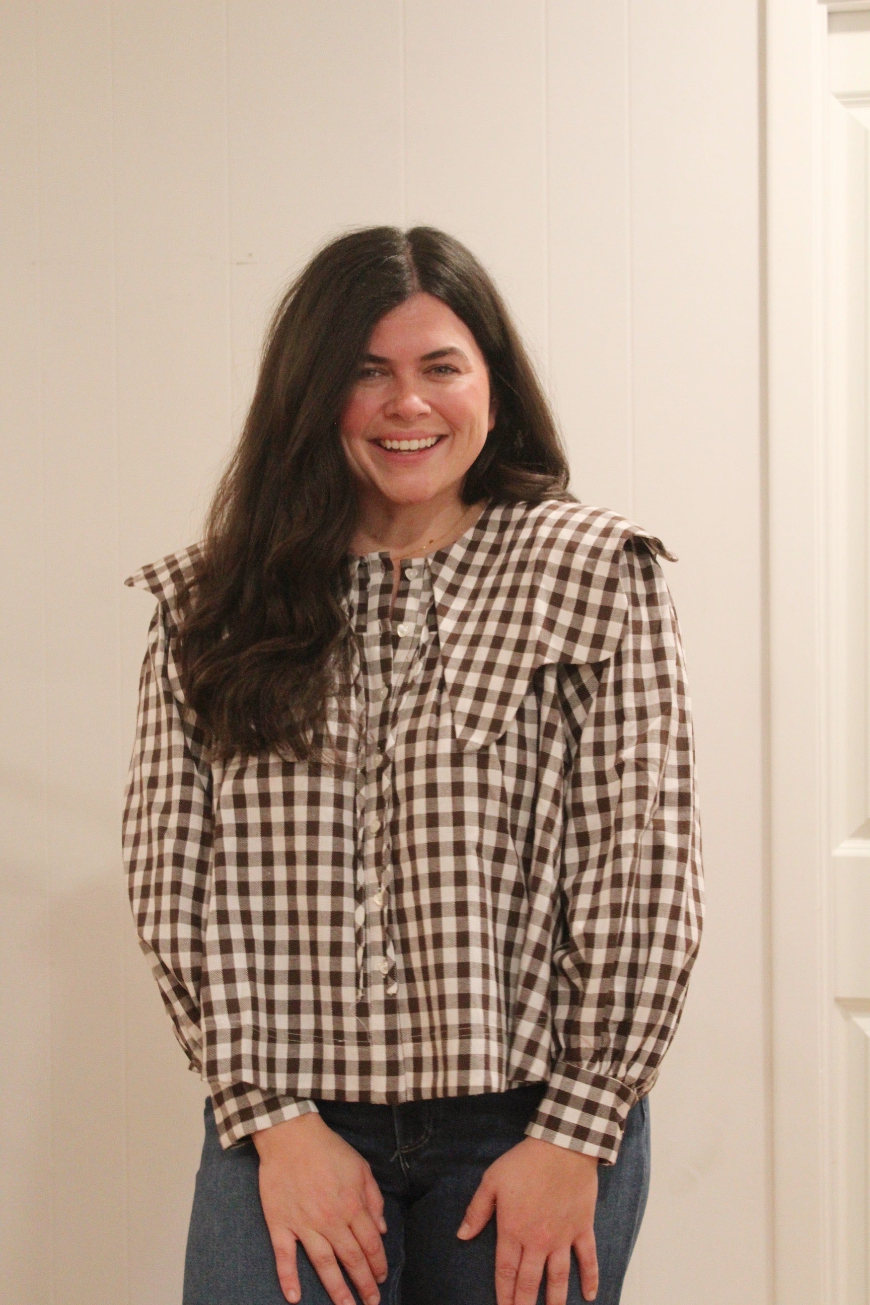 Adorable dark brown/white gingham top